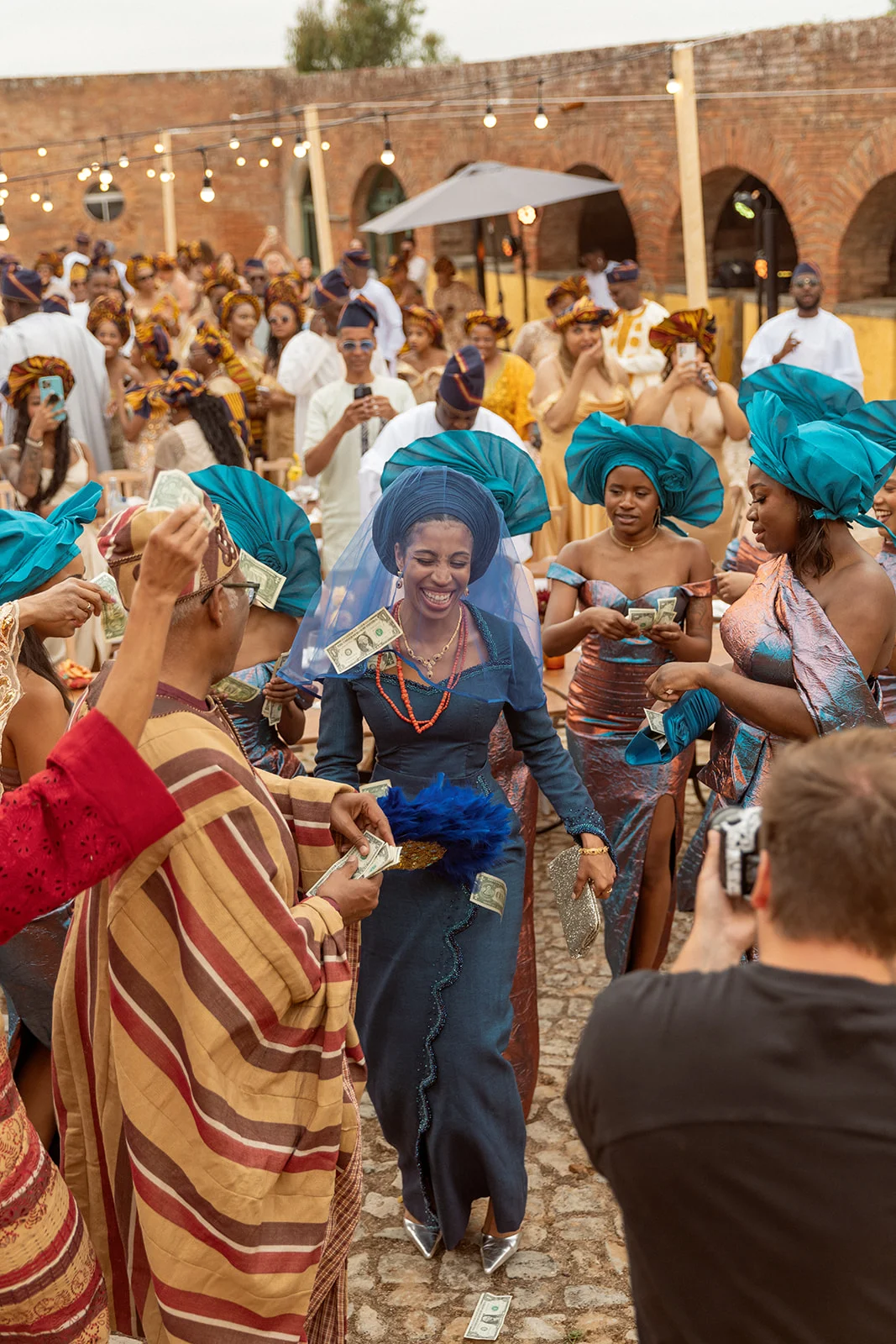 Folarine: Jeter de l'argent pendant le mariage symbolise la richesse et la fortune, et l'argent aide le couple à démarrer.